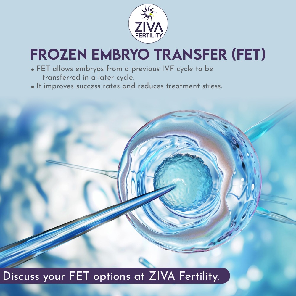 In modern fertility treatments, Frozen Embryo Transfer (FET) has become a preferred and successful approach for many couples. It offers flexibility, improved success rates, and a more comfortable treatment experience — making it an important option in assisted reproduction. What Is Frozen Embryo Transfer (FET)? Frozen Embryo Transfer involves using embryos that were created and frozen during a previous IVF cycle. Instead of starting a new stimulation process, the frozen embryos are thawed and carefully transferred into the uterus in a later cycle — when the body is better prepared for implantation. Why Choose FET? FET offers several key benefits for individuals and couples undergoing fertility treatment: A Calmer, More Controlled IVF Journey Many couples find that FET offers a sense of emotional relief. The ability to pause between cycles helps reduce stress and gives your body time to recover — both crucial for successful implantation. Explore Your FET Options at ZIVA Fertility At ZIVA Fertility Center, Hyderabad, our specialists provide personalized FET treatment plans tailored to your health, timeline, and fertility goals. From advanced embryo freezing techniques to compassionate guidance, we ensure a smooth and supportive experience throughout your journey to parenthood. Discuss your Frozen Embryo Transfer (FET) options at ZIVA Fertility Center, Hyderabad, and take your next confident step toward achieving your dream of pregnancy.