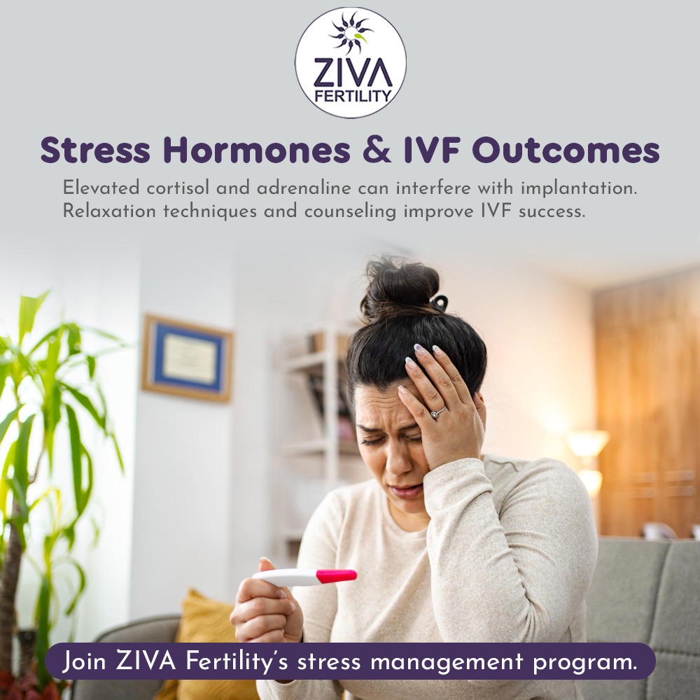Hope, anticipation, and occasionally stress can all be part of the emotional journey that is IVF. Stress itself can affect the effectiveness of fertility treatments, which many people are unaware of. Stress’s Impact on IVF Your body releases cortisol and adrenaline when you are under stress. Although the body naturally produces these hormones as part of its “fight or flight” response, high levels can disrupt implantation and the balance of the reproductive system as a whole. Prolonged stress may interfere with uterine blood flow, hormone signaling, and even egg quality, all of which can affect the results of IVF. The Strength of Rest and Emotional Assistance “The good news?” IVF success rates have been demonstrated to be considerably increased by emotional counseling and relaxation techniques. Easy techniques that can help control stress hormones and promote a more relaxed mind and more receptive body include guided counseling, deep breathing, gentle yoga, and meditation. Participate in ZIVA Fertility’s Stress Reduction Program Your mental and physical health are equally vital, and we at ZIVA Fertility recognize this. Our stress management program is designed exclusively for IVF patients, combining evidence-based relaxation techniques with professional counseling support – helping you stay balanced during your reproductive journey. Take the next step toward a calmer mind and a stronger body for your IVF success. Contact Us Today!